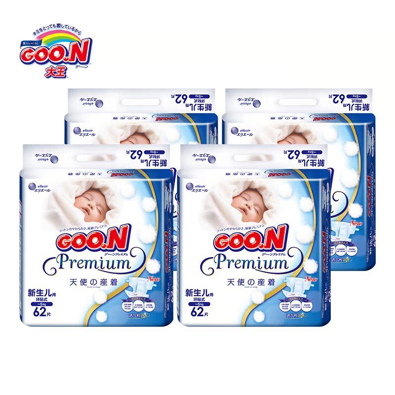 Japanese king angel diaper ring sticker type unisex diaper non-wet breathable light NB62 pieces * 4