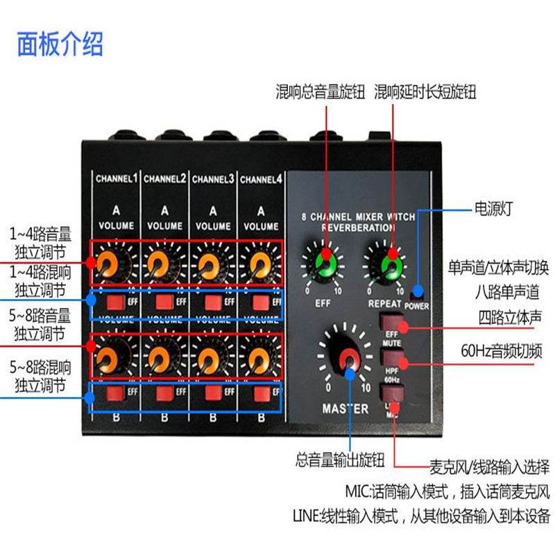 8-way sound multi-channel microphone dispenser microphone branch hub mixer multi-channel microphone augers