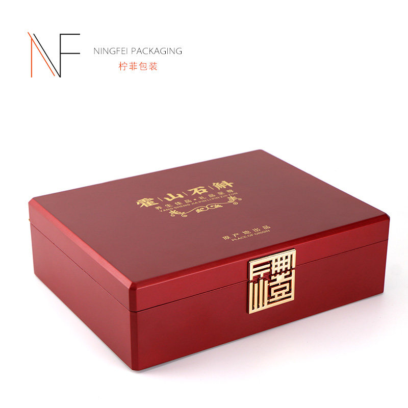 Dendrobium candidum packaging box Dendrobium rice powder new high-end 50g100g red Huoshan medicinal material wooden empty gift box