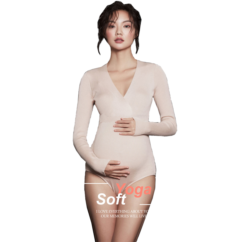 280 Online Red New Pregnant Woman Photos Sexy Deep V Collar Knit SOFT Wind Belly Boomer Mommy Writing True Costumes