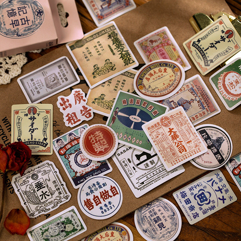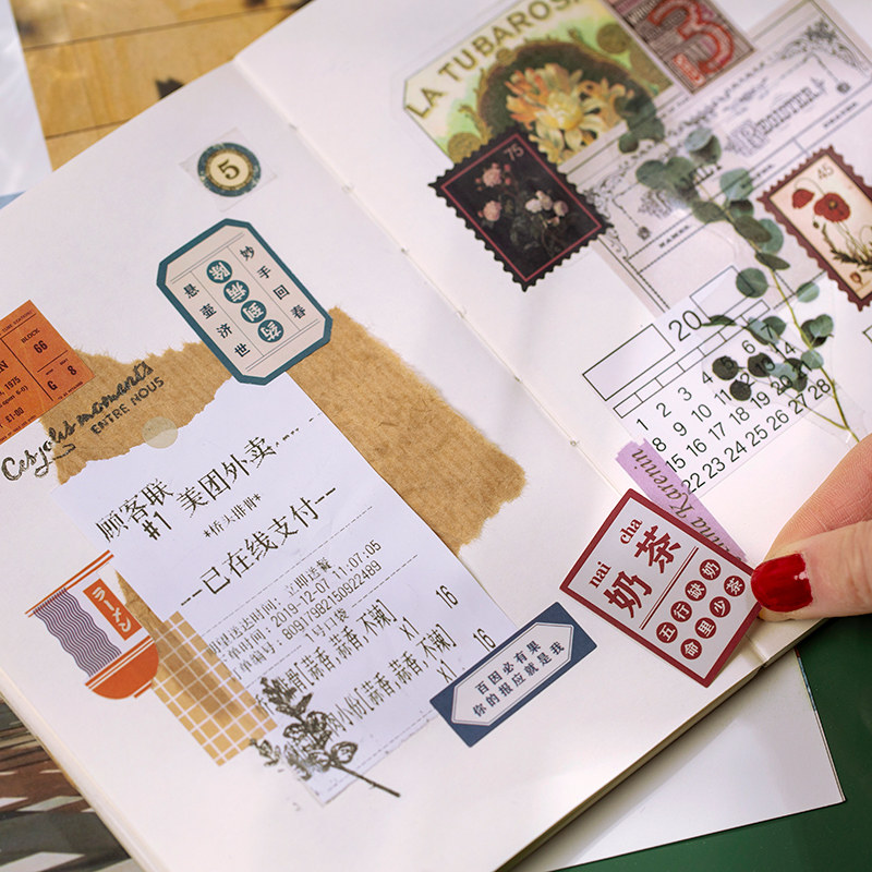 Idle Hand Ledger Boxed Sticker Creative Retro Stamps Handbill Diy Material Decorative closure stickers 50 sheets of entry