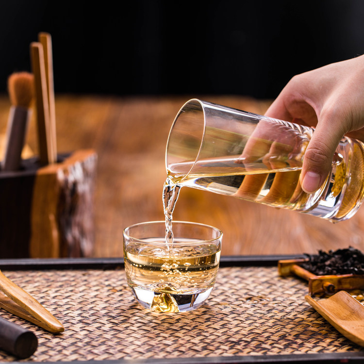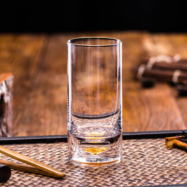 Taiwan white hand-made green tea cup crystal glass juice cup heat-resistant glass direct tube gold foil cup
