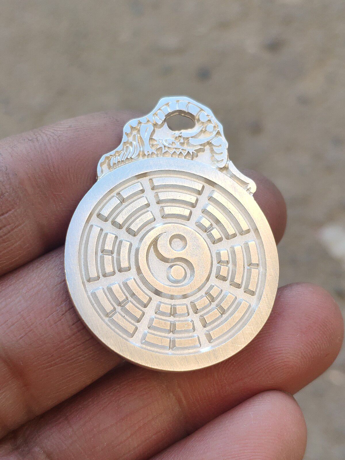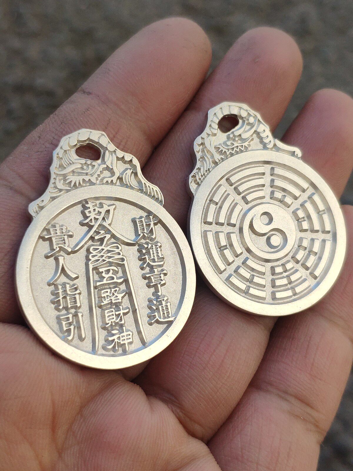 (5-way chasiyuan dragon's first pure silver hanging flowers) Back innate gossip Tai Chi Twin Fish Great Desert Full Web Original Design