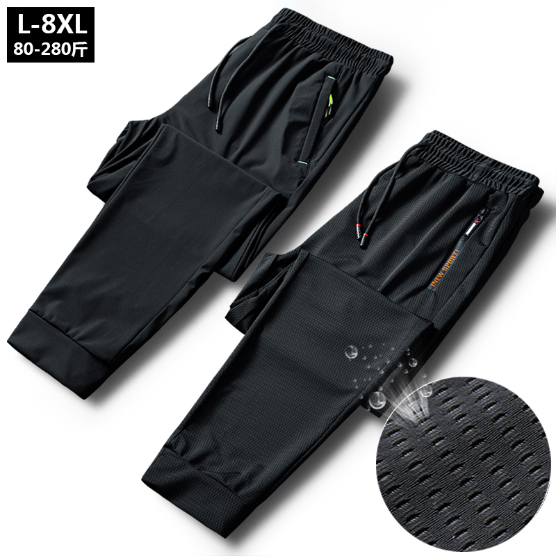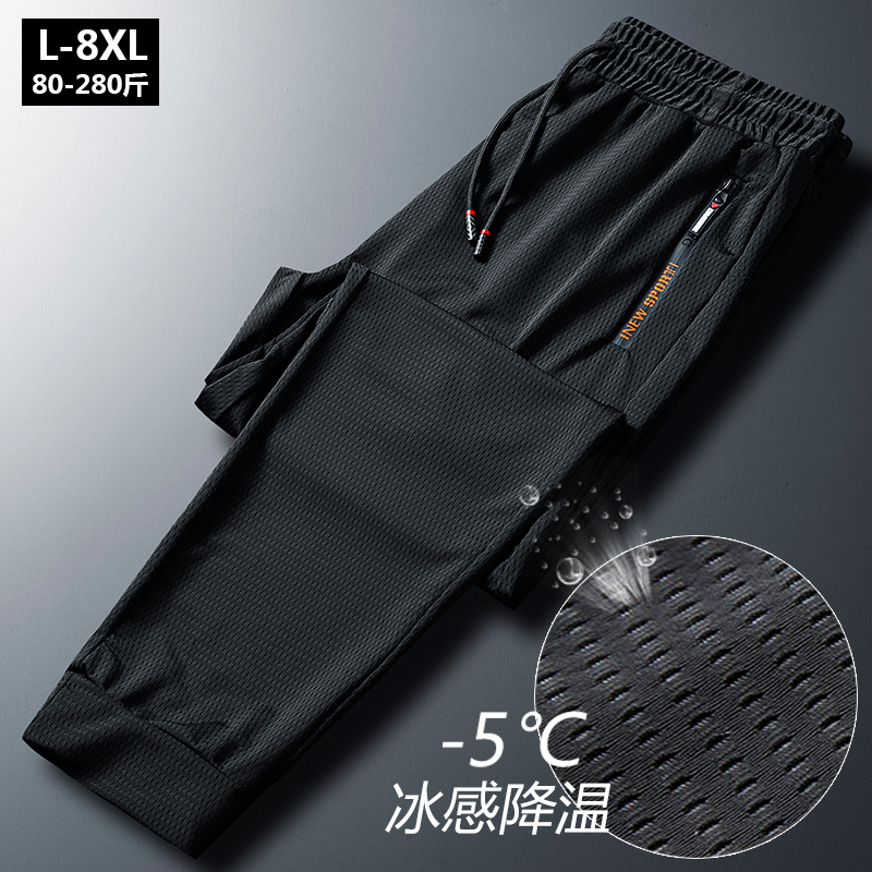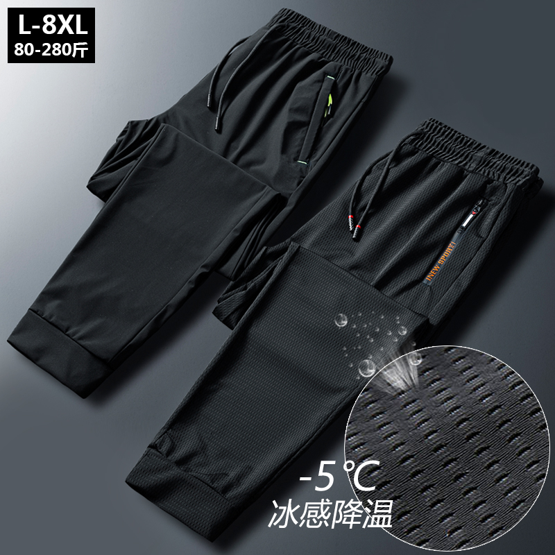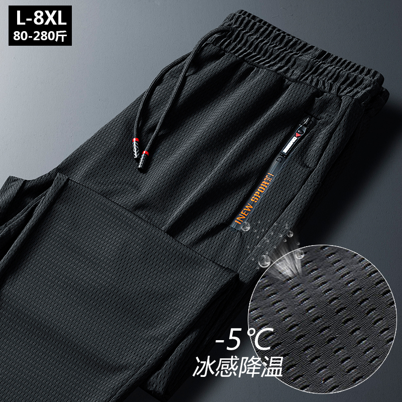 Ice silk pants Men's summer ultra-thin mesh quick-drying sports casual pants Loose fat plus size air conditioning pants