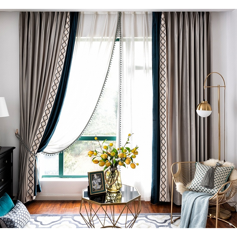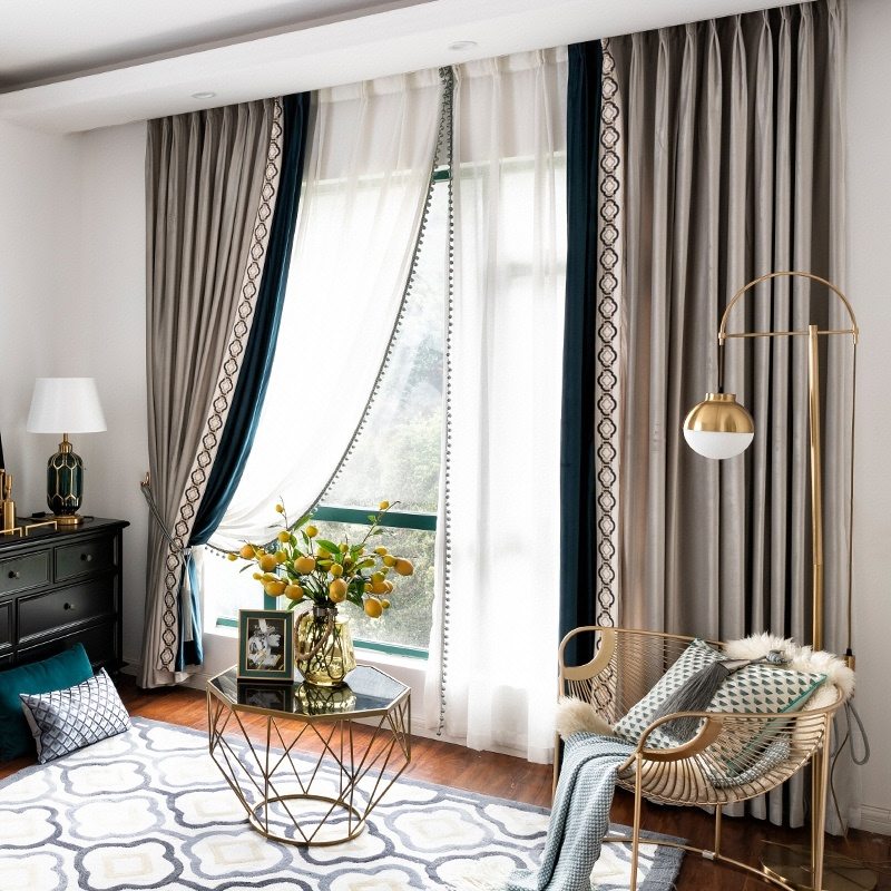Grammy American modern simplicity New Chinese light and luxurious thickened shading suede cloth bedroom living room custom curtains