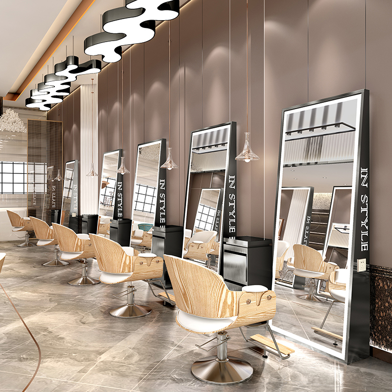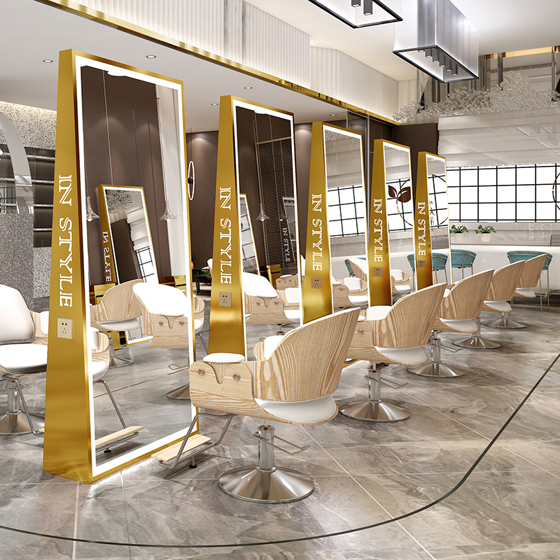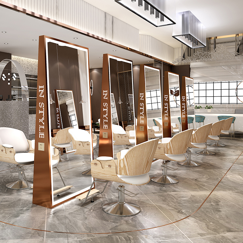 New professional custom-made floor-to-ceiling full-body triangle mirror stainless steel Nordic barber shop mirror table special hair salon mirror table