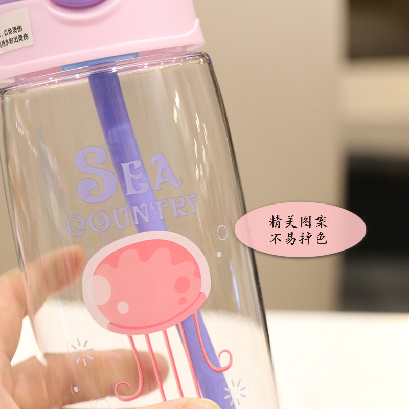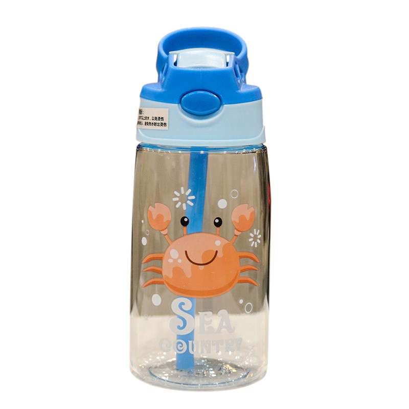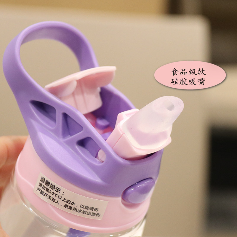 Children's sports water bottle plastic cup cartoon cute pupils portable straw cup duckbill anti-choking bomb cover anti-fall cup