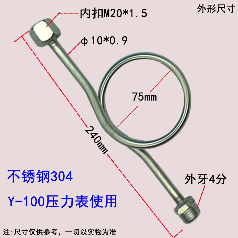M14 20 * 1 5 4 parts stainless steel seamless welding condensation 304 meter bending thickened buffer tube pressure meter