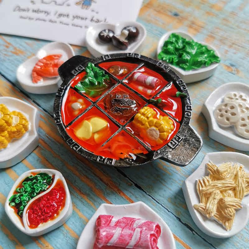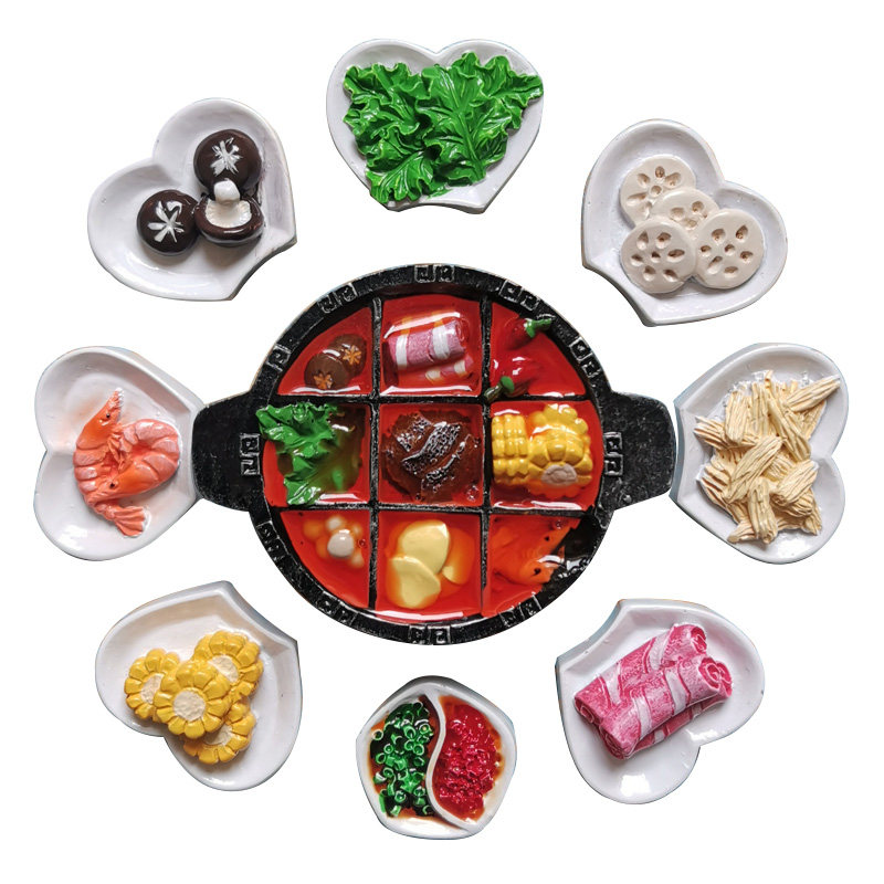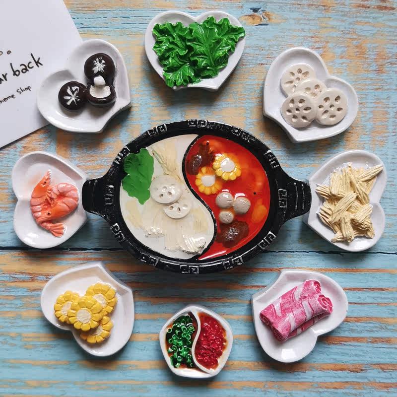3D three-dimensional Chinese style Chongqing hot pot side dishes resin refrigerator stickers Jiugongge Yuanyang pot magnet food decoration stickers