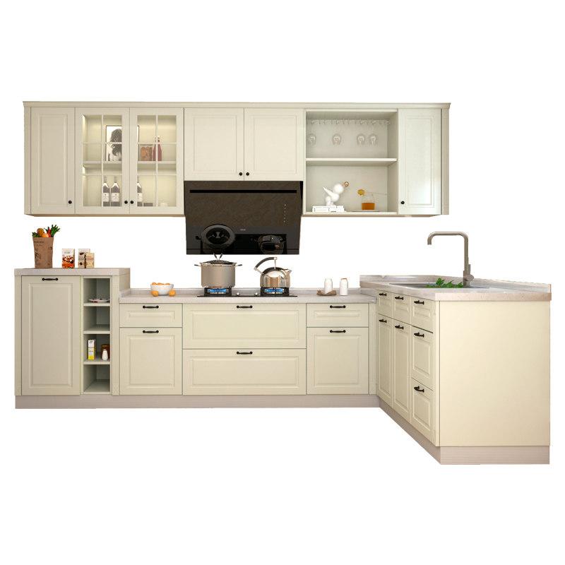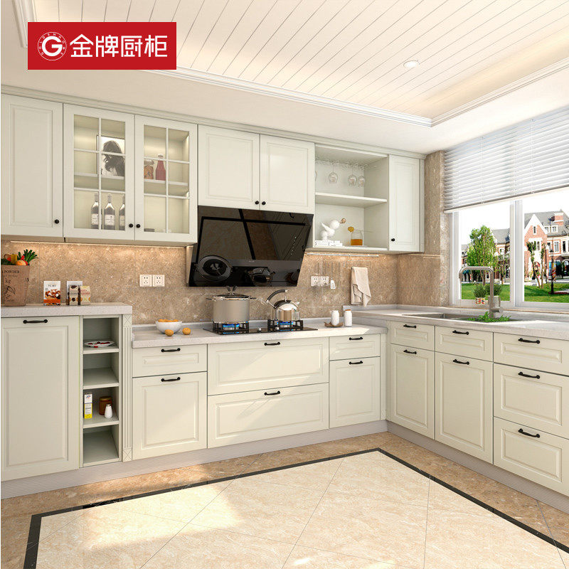 Gold medal kitchen cabinet Jane European style quartz stone countertop integral antibacterial kitchen cabinet custom stove cabinet decoration