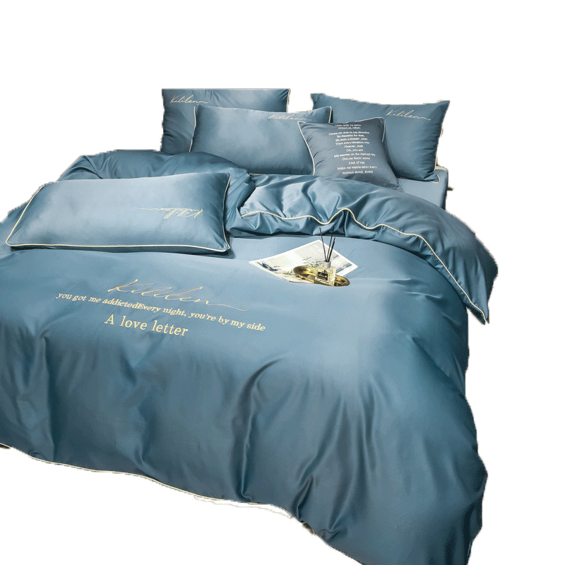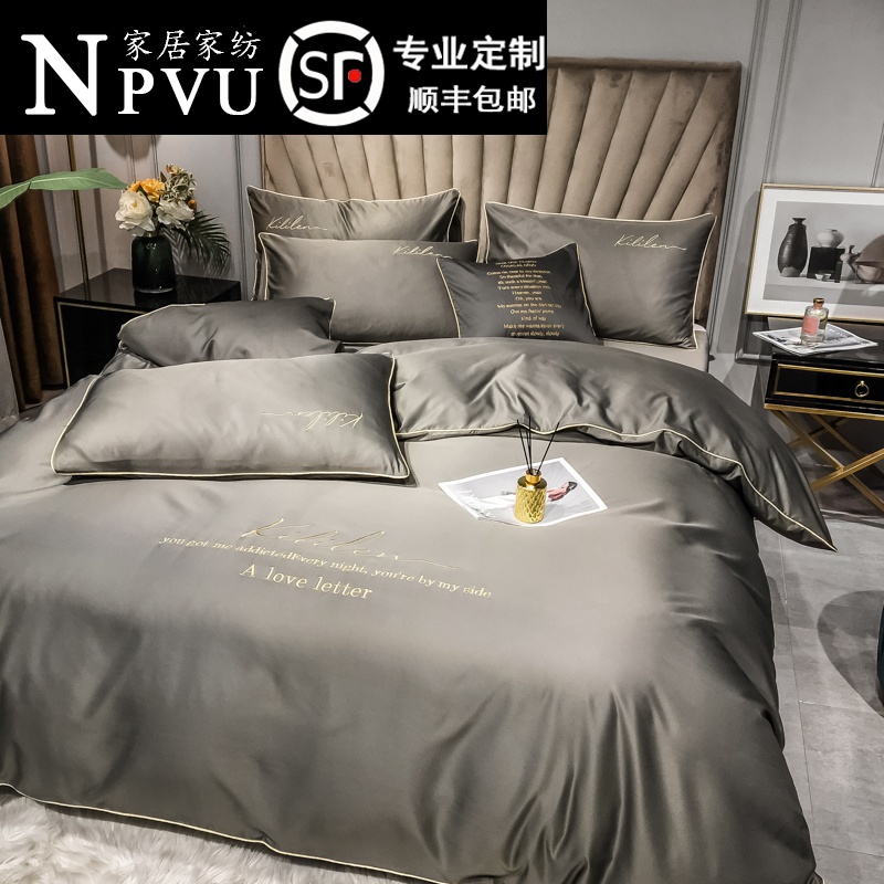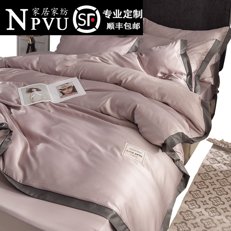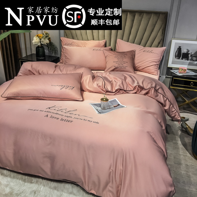 Four pieces of ice silk European-style silk sliding bed with water washed naked sleeping real silk light and luxurious bed in summer embroidered with three sets