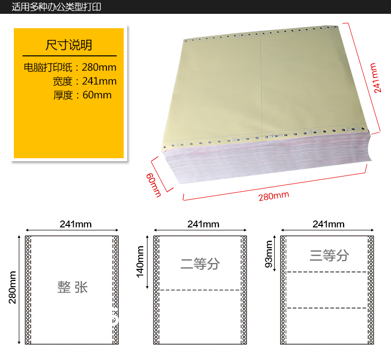 Computer photocopying paper A4 triple two-part two-part two-part four-part five-part three-part 241-3-part dot matrix printer Three-part single invoice list pinhole 2-part 4-part paper delivery note