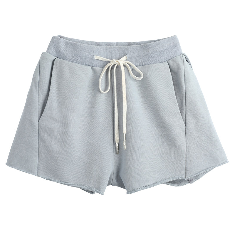 OKMA casual shorts women's summer thin high waist thin loose sports hot pants rolled-up wide legs gray a-line pants
