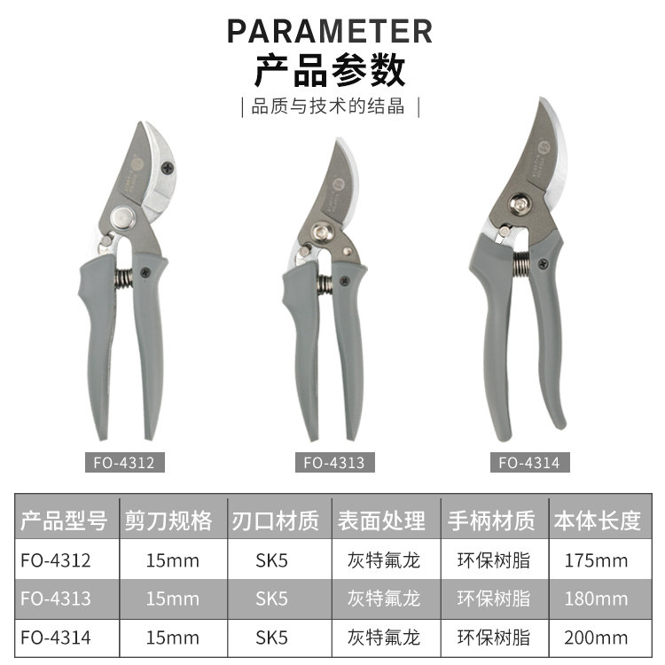 FO-4308A Effort Saving Pruning Shears FO-4312 Fine Horticultural Shears FO-4313 Boutique Horticultural Shears FO-4314 Boutique Horticultural Shears FO-4311 Powerful Rough Prunes