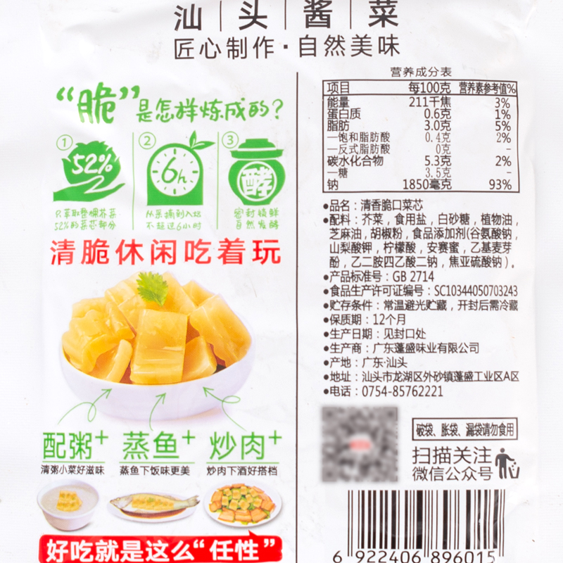 Fluffy 52-degree crispy vegetable core 80g bagged Chaoshan Zhengzong Authentic Produce Mixed Salty Breakfast Lower rice pickled vegetables Pickle Pickle