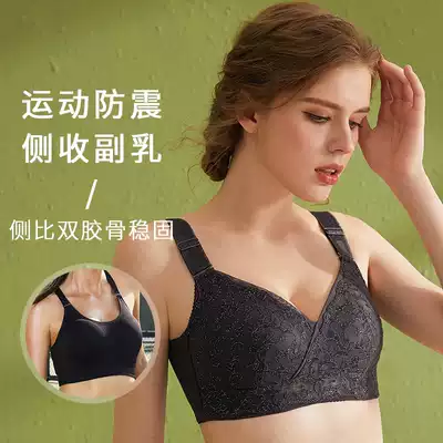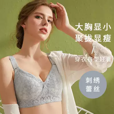 Embroidered underwear women without steel rings, large breasts, small bras, thin full cups, auxiliary breasts, adjustment type, anti-sagging summer