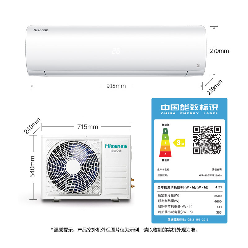 Big 1.5 hp new energy efficiency Hisense inverter air conditioner hang-up official flagship intelligent cooling and heating dual-purpose home E25A3