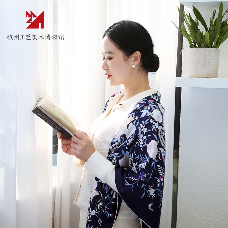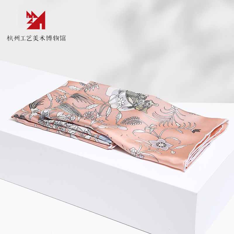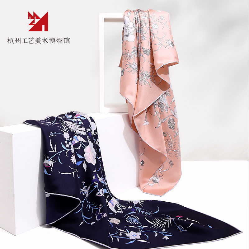 (Hangzhou Arts and Crafts Museum) Flower Love Large Square Scarf Silk Women's Scarf Mulberry Silk Scarf Gift Box