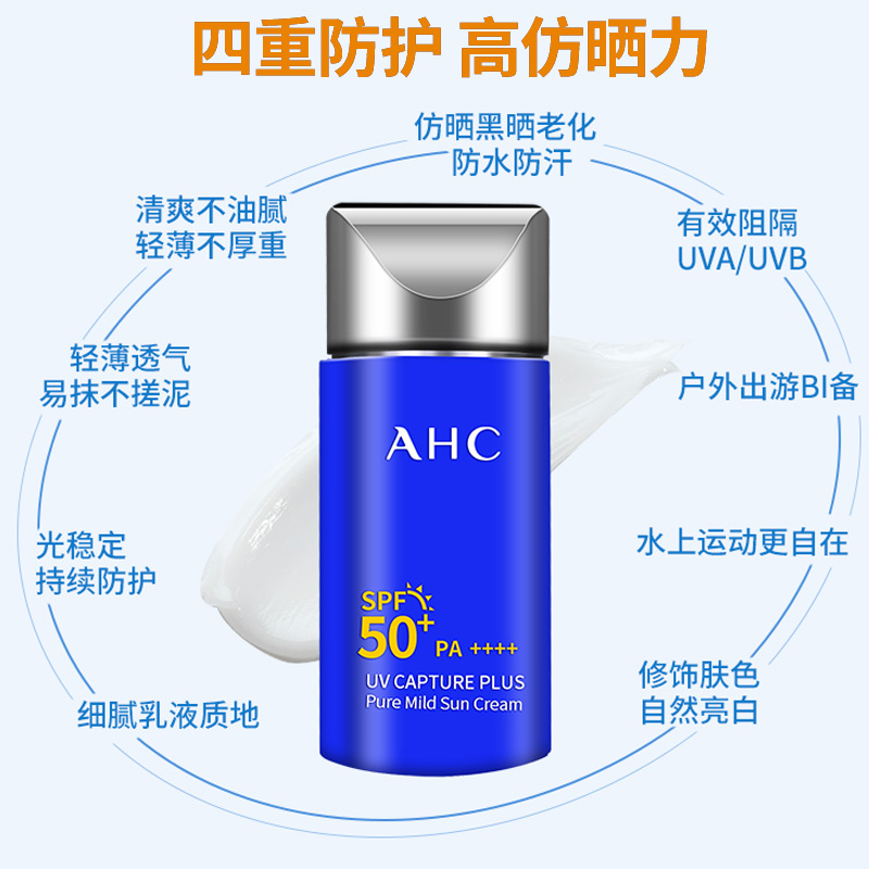 Korean son-in-law AHC small blue bottle sunscreen face men and women anti-UV isolation cream refreshing and not greasy 50ML