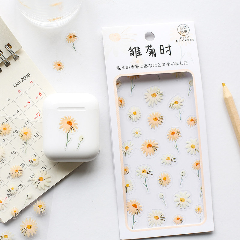 Net Red Little Daisy Mug Card Stickler Hand Ledger mobile phone protective shell Decorative Sticker small Fresh Strawberry Cherry Blossom Waterproof Sticker