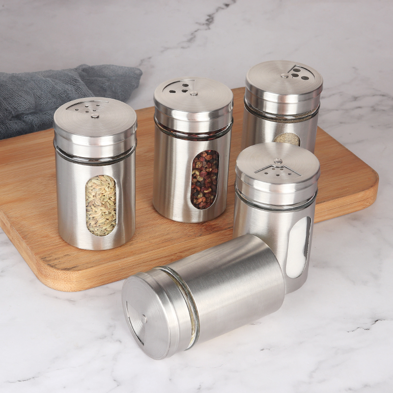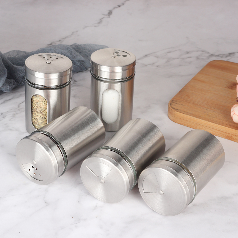 Stainless steel Barbecue Sprinkled bottle of rotating glass seasoning Home Commercial damp pepper Salt Sesame bottle Sardinar