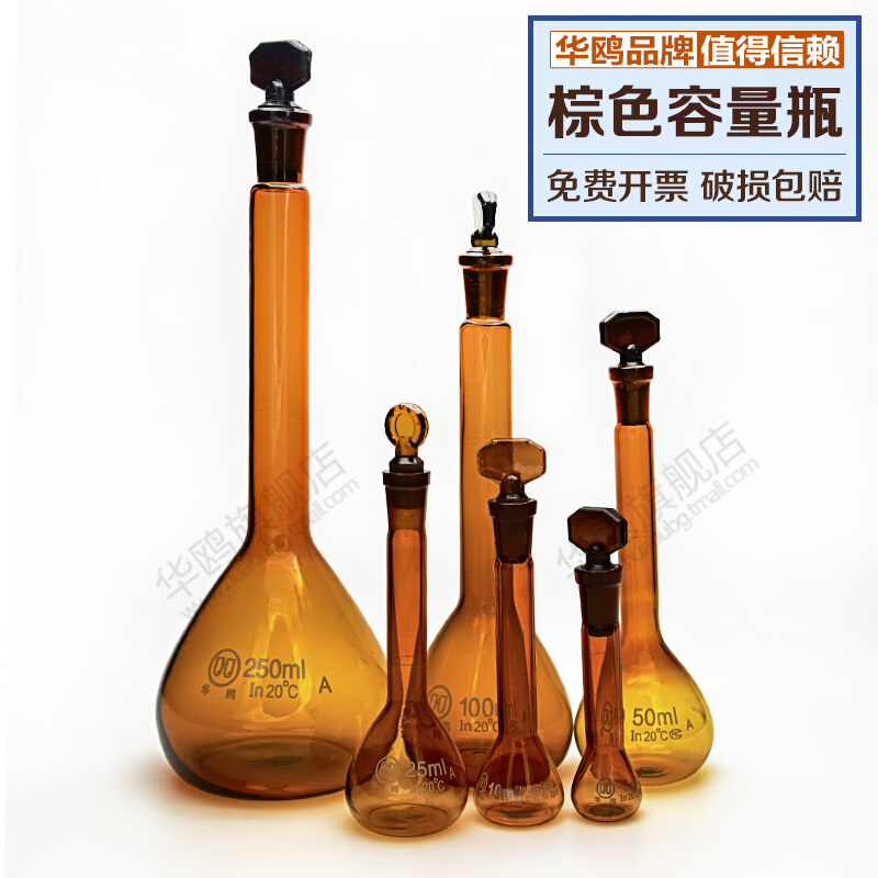 Huaou volumetric bottle chemical experiment teaching glass volumetric bottle A-level package inspection white tea brown grinding mouth plug 5ml 50 100 250 500 2000ml