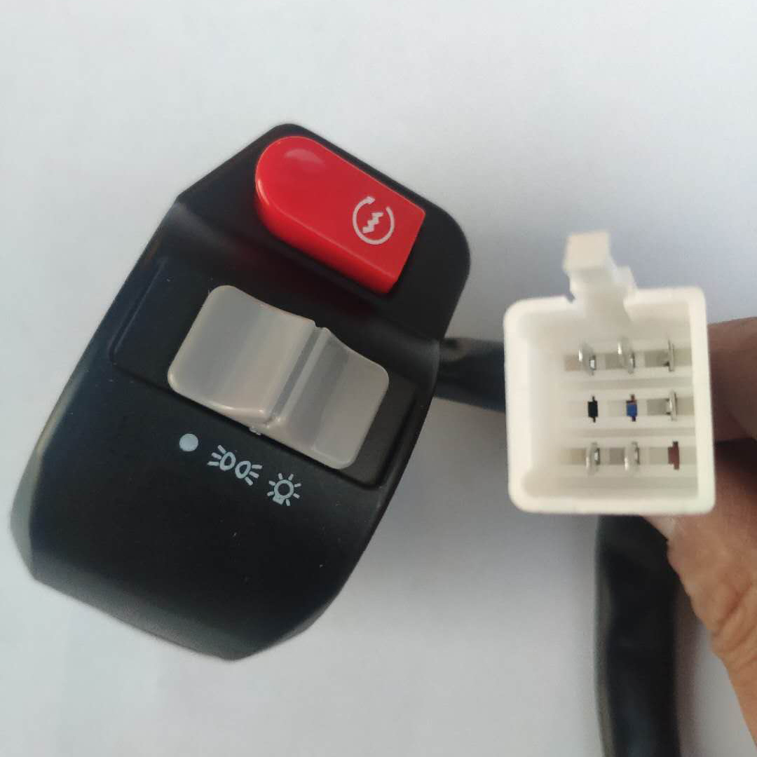 A pair of left and right disc brake switches (with double flashes), a pair of gray buttons, left and right disc brake switches (with double flashes), one disc brake on the left (with double flashes), one disc brake switch on the right, one drum brake on the left (with brake