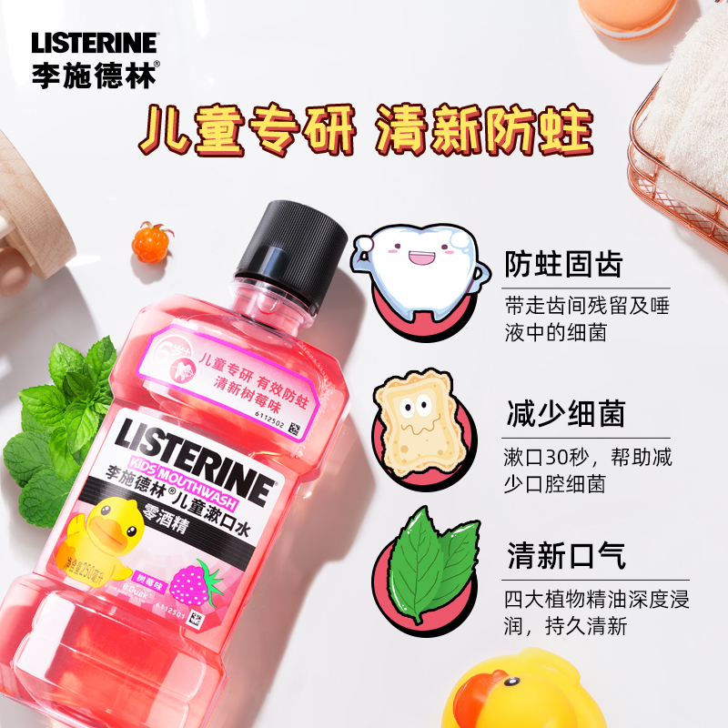 Listerine Children's Mouthwash Raspberry Anti-Cavity Fluoride Mouthwash Mild Fresh Breath Fruit Flavor Mouthwash
