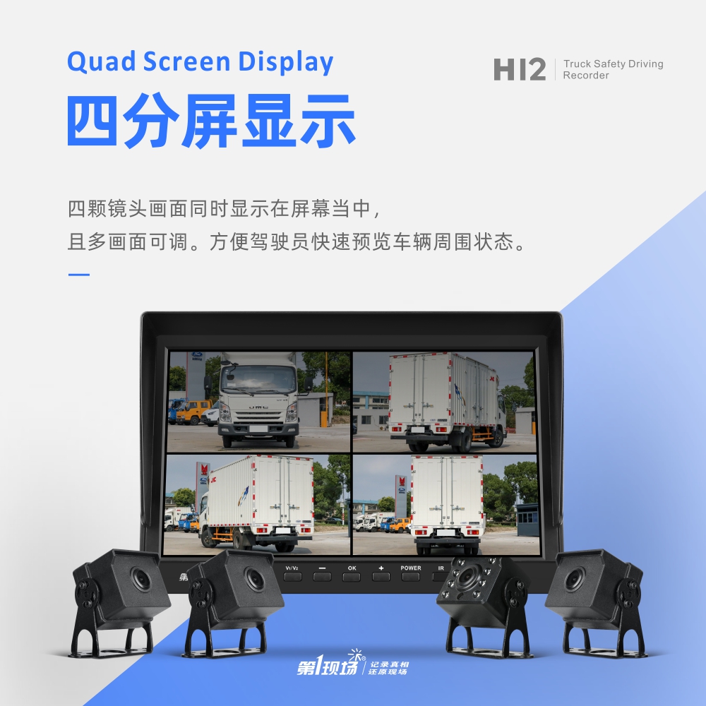 The first scene 24V truck 360 HD driving recorder front and behind the four record monitoring reverse image H12