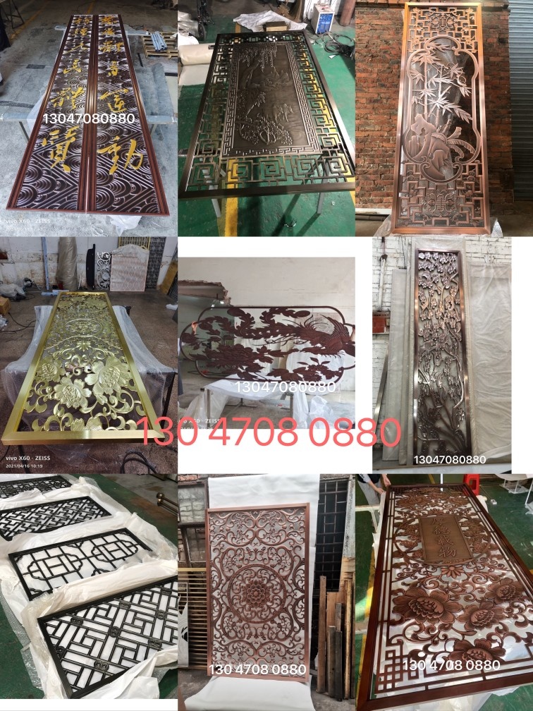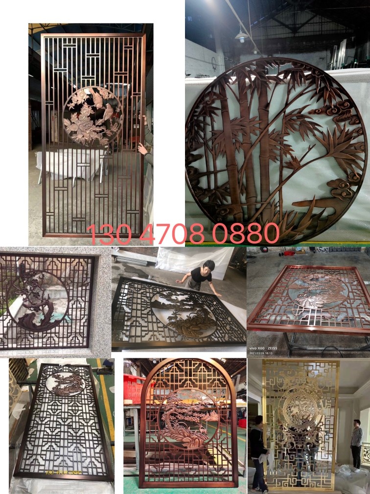 Stainless steel partition New Chinese-style aluminum carving hollow Rose gold hotel porch European-style living room bronze screen