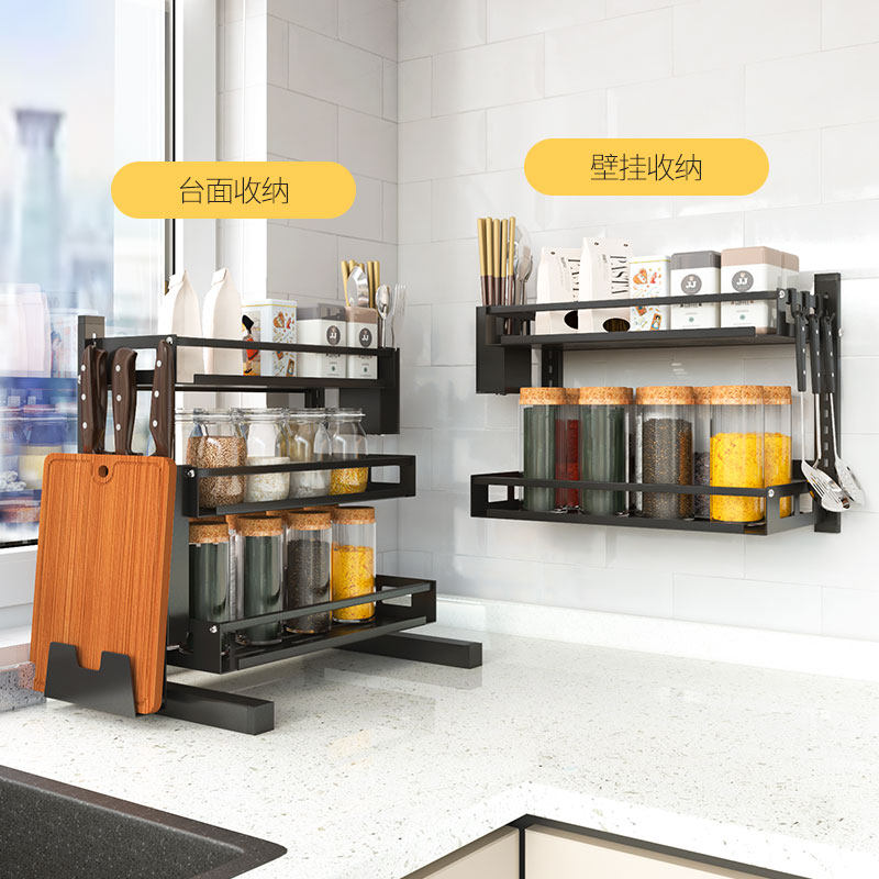 Stainless steel kitchen rack wall hanging wall hole-free flavoring tank shelf storage supplies home