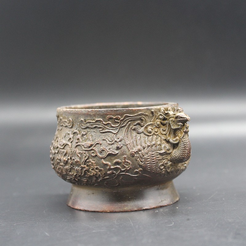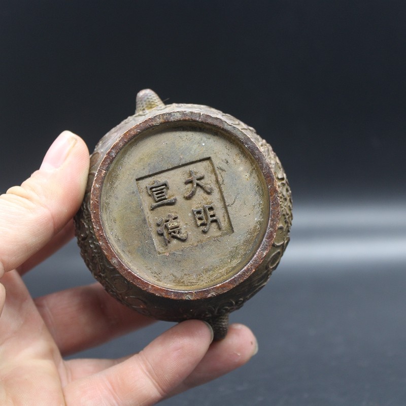Ancient play miscellaneous collection antique Xuande stove Shuangfeng Incense Burner Buddha Hall is dedicated to the handicraft swing decoration