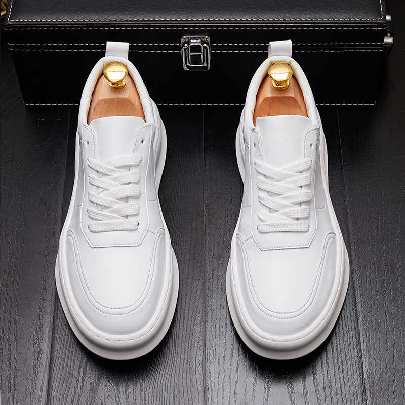 Hong Kong trendy brand white shoes men's new version of the trendy all-match low-cut thick-soled inner heightening genuine leather casual sports shoes trend