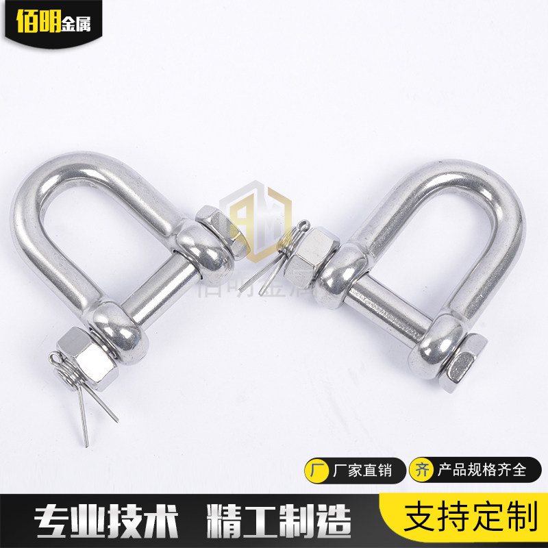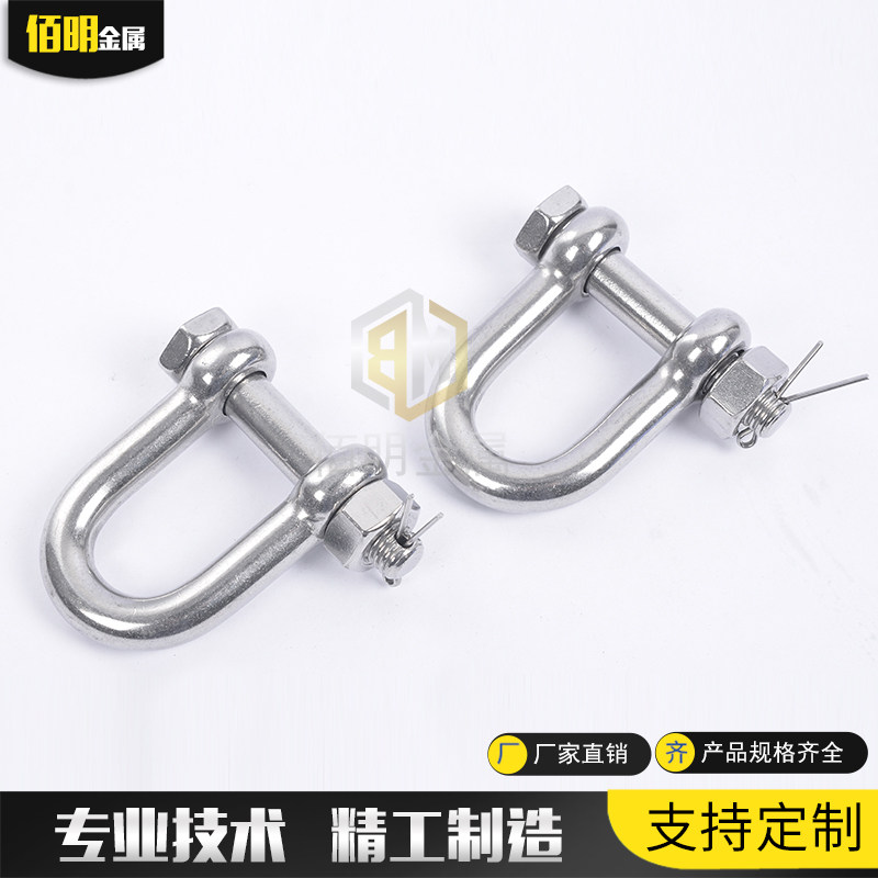 304 Stainless steel shackle D-type insurance U-type U-shaped with nut lifting Bow-shaped Bow-shaped American Horseshoe shackle