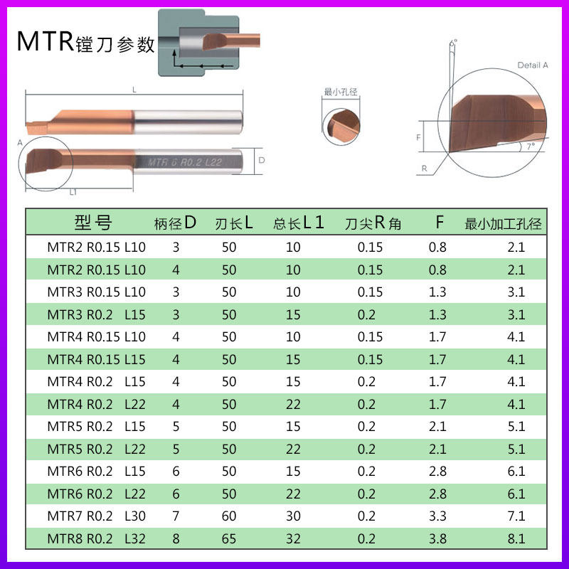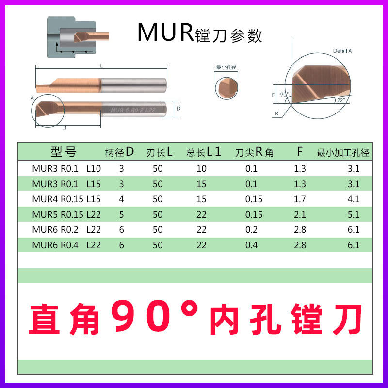 Tungsten steel alloy small aperture boring tool MTR4 CNC inner hole integral small boring tool bar MUR6 micro inner hole turning tool