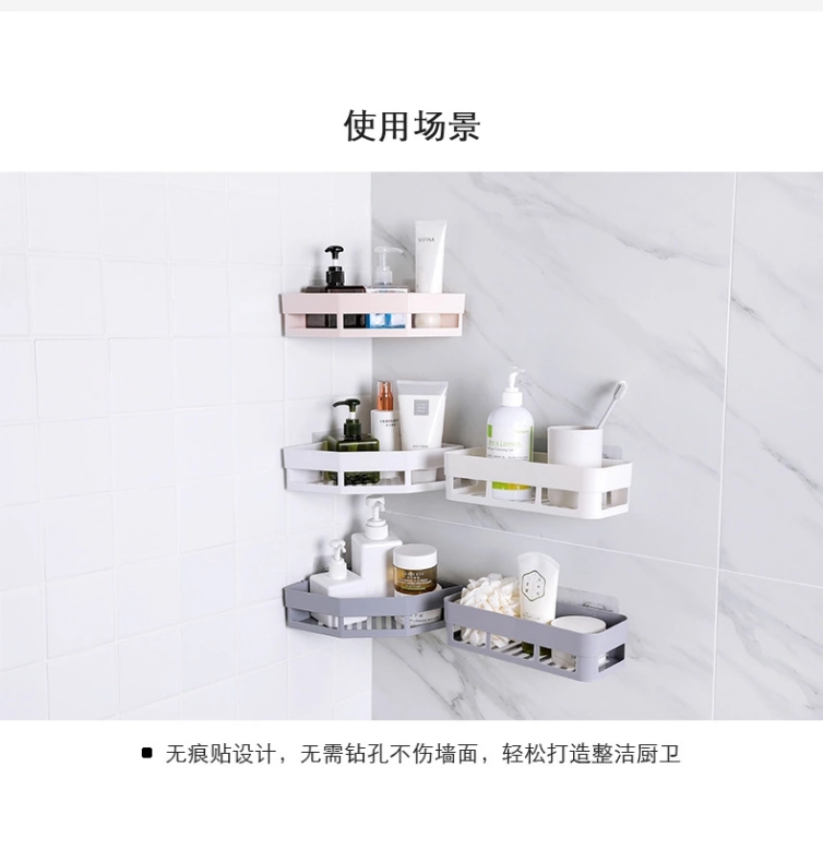 Punch-free corner shelf powder room wash rack Bathroom non-marking wall hanging tripod storage shelves
