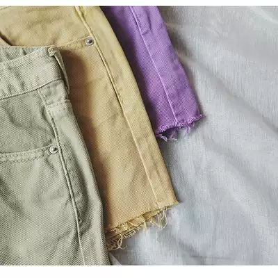 Candy color denim shorts women's 2020 summer fashion net red envelope high waist jeans light purple burrs hot pants trend