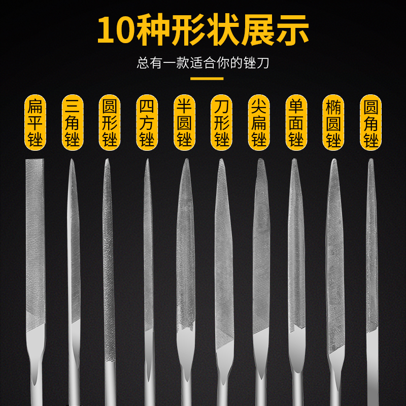 Filing knife steel filing 10 sets of suit shaping filing suit small steel filing knife metal flat semi-circle filing woodworking file
