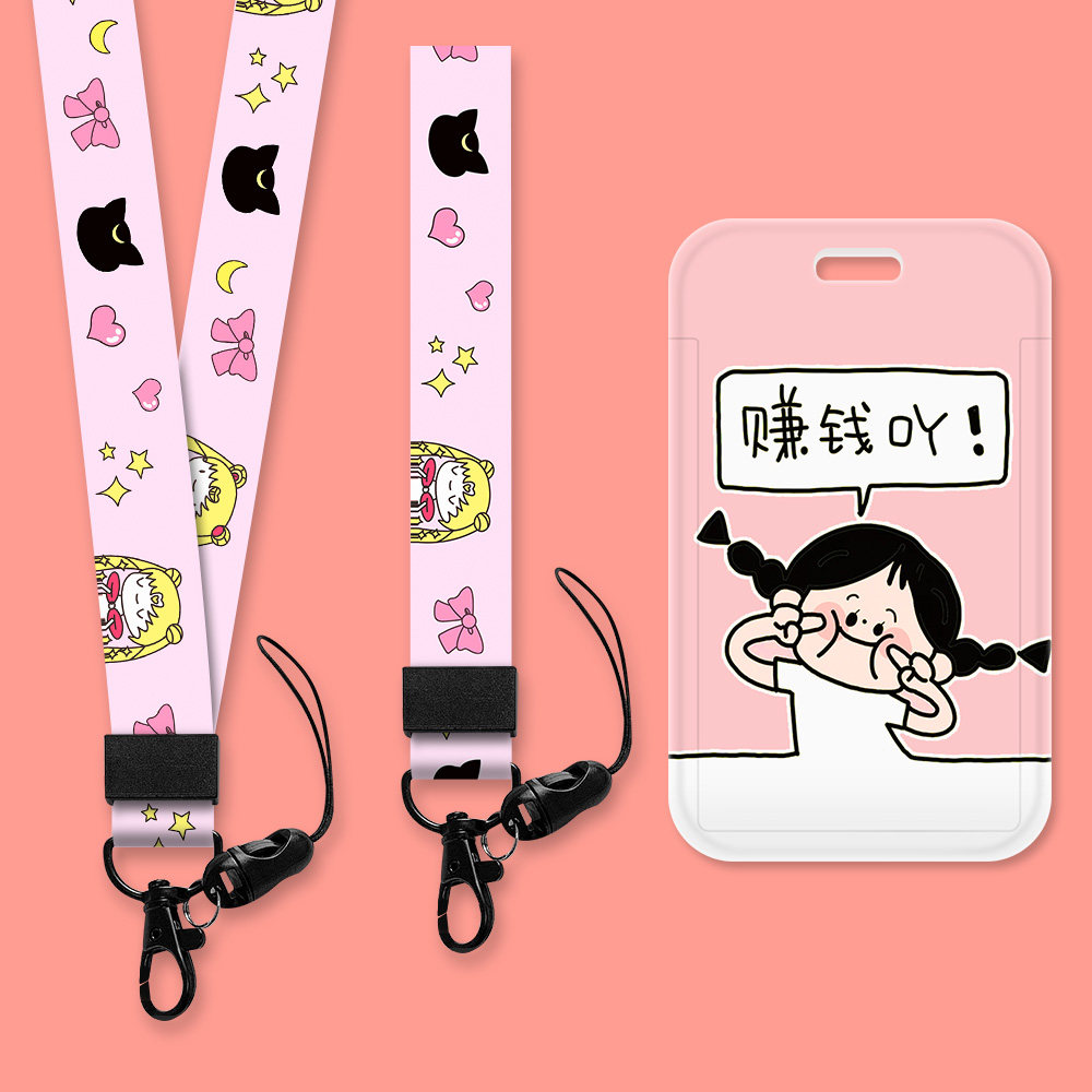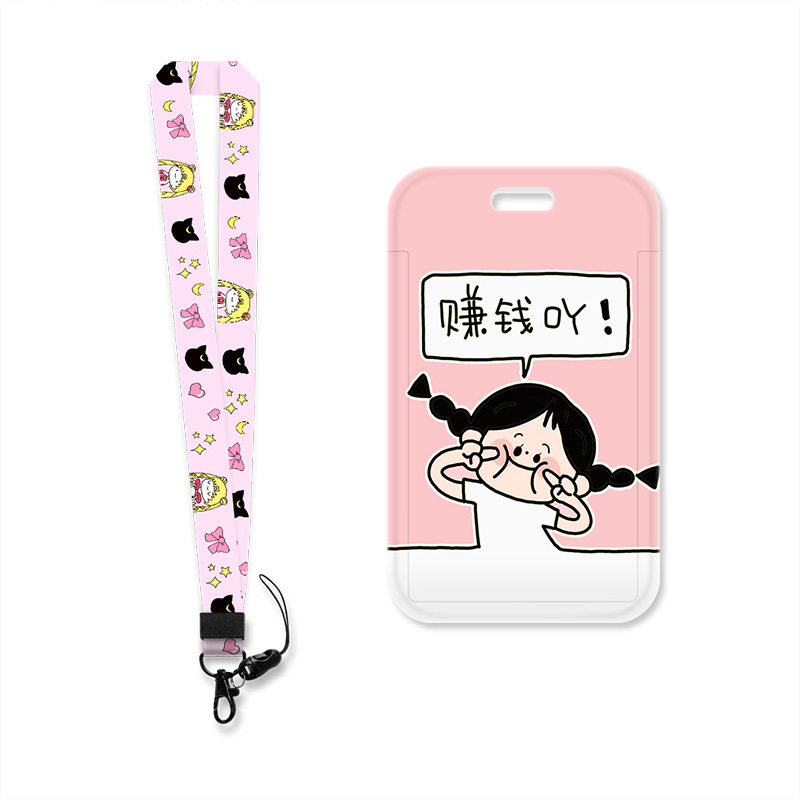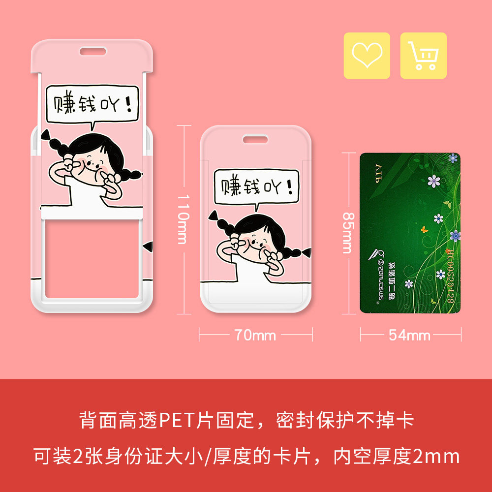Cute cartoon rich woman girl cartoon pick-up kindergarten badge card card set work permit bus card set student campus staff work card lanyard work factory card work card certificate protection cover