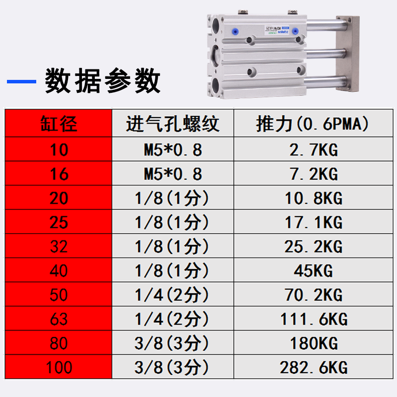 TCM three-axis three-rod guide rod cylinder MGPM12 16-10X20X25X30X40X50X75X100X125250