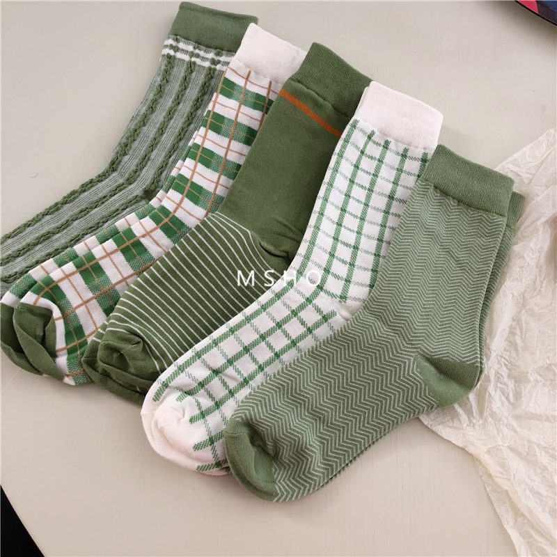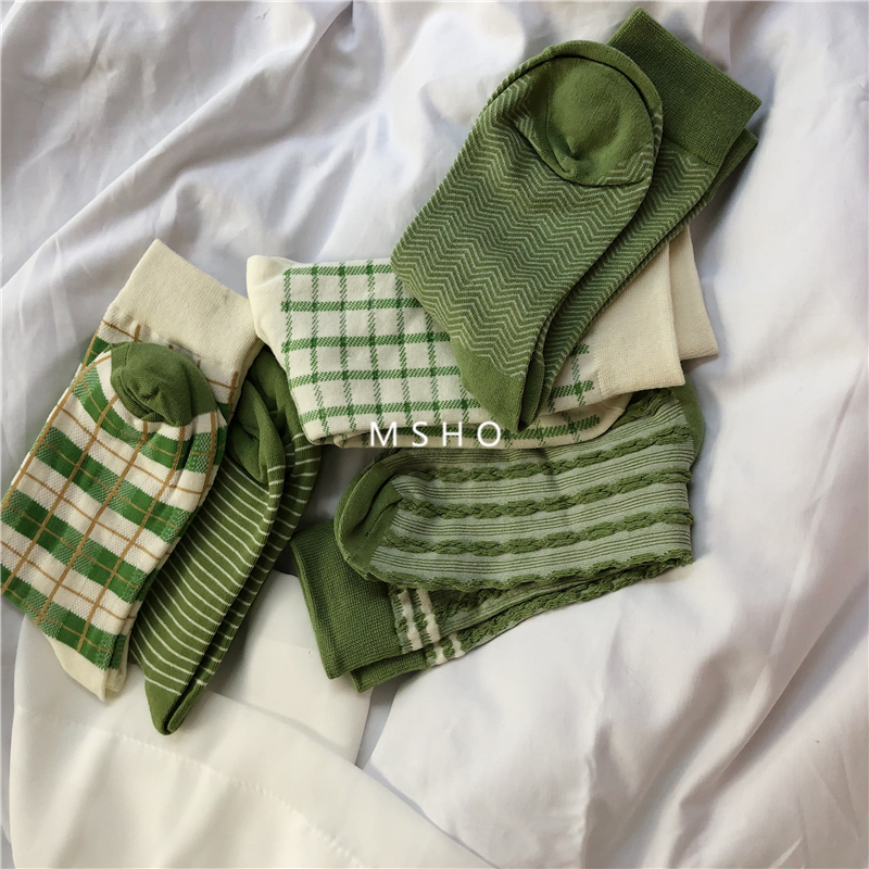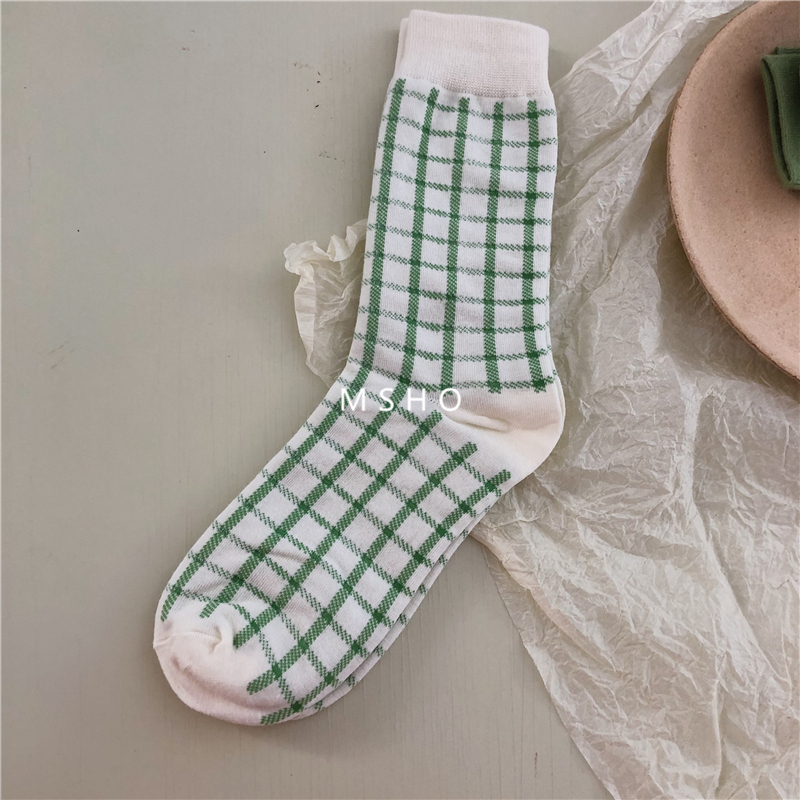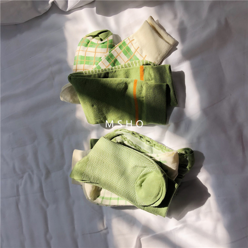 ooahz fresh avocado color spring and summer cotton plaid stripe Korean version tide socks ins net red socks all-match mid-tube socks