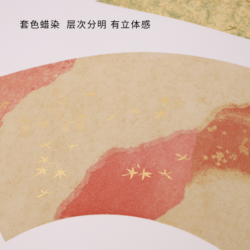 (Jing Huitang)Wind-style batik fan-shaped cardboard thickened hand-sprinkled gold rice paper cardboard Chinese painting calligraphy Blank batik hot-stamping gold soft card Fan-surface Half-cooked small Kai-xing calligraphy works paper free mounting
