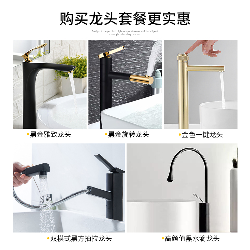 Type A single basin with free sewage accessories A style basin with black square faucet package A style basin with gold one-key faucet package A style basin with white water drop faucet package A style basin with white pull-out faucet set