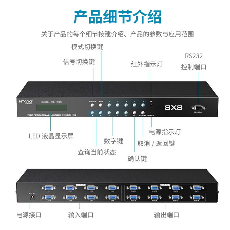 Maxtor-dimensional moment MT-VT818 VGA matrix 8 in 8 out switcher with audio 1U rack-mounted remote control server