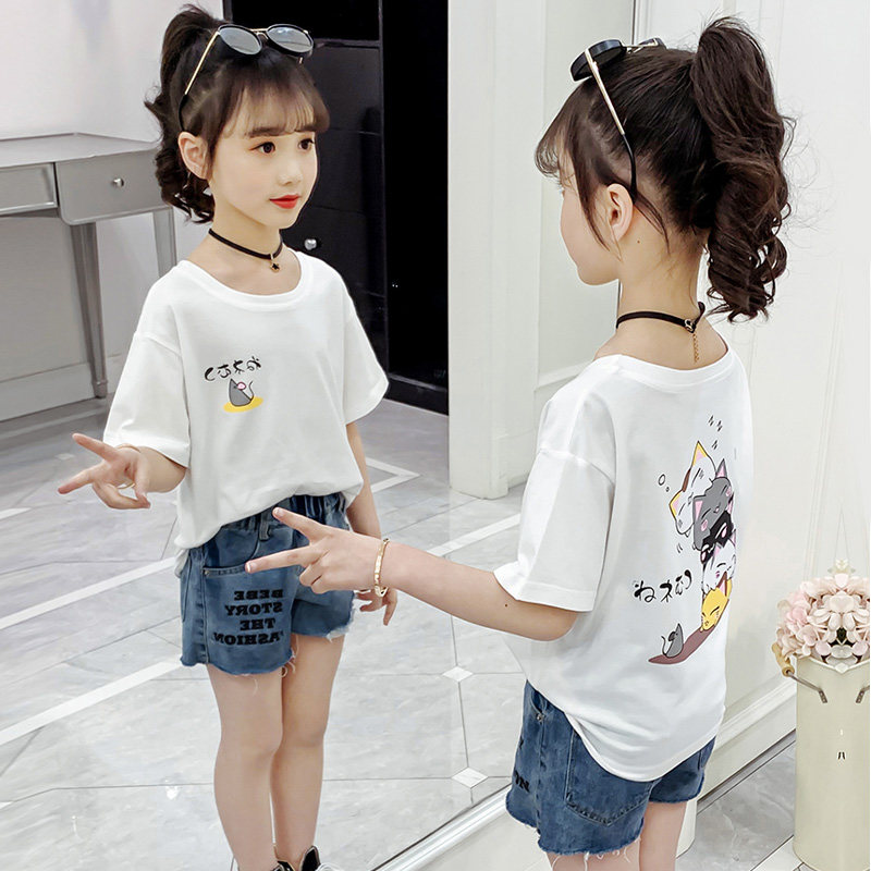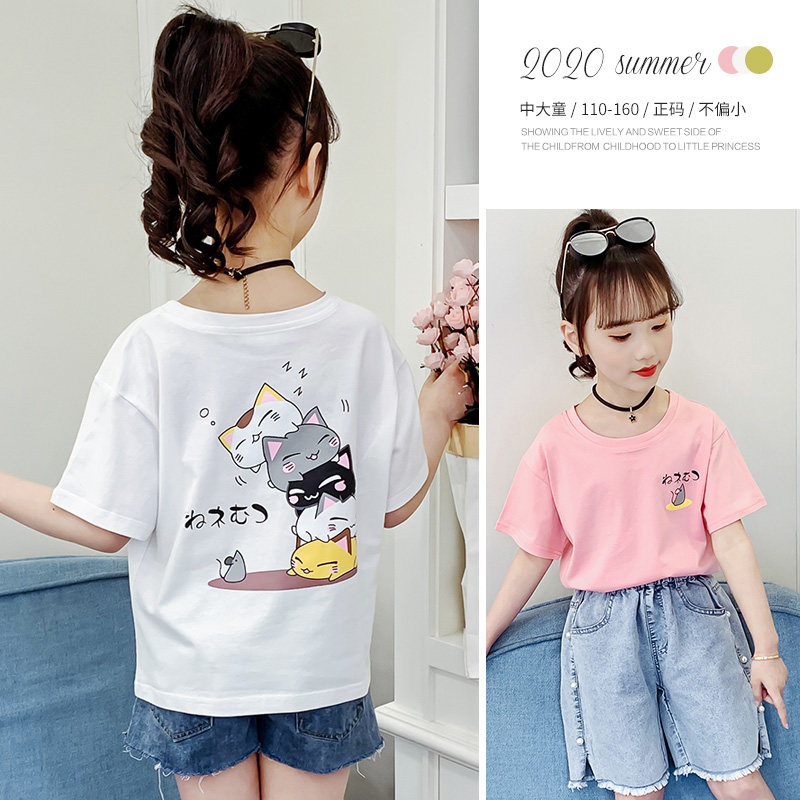 Girls short-sleeved T-shirt summer 2021 new middle and big children Korean style foreign style loose half-sleeved top trendy children's summer dress