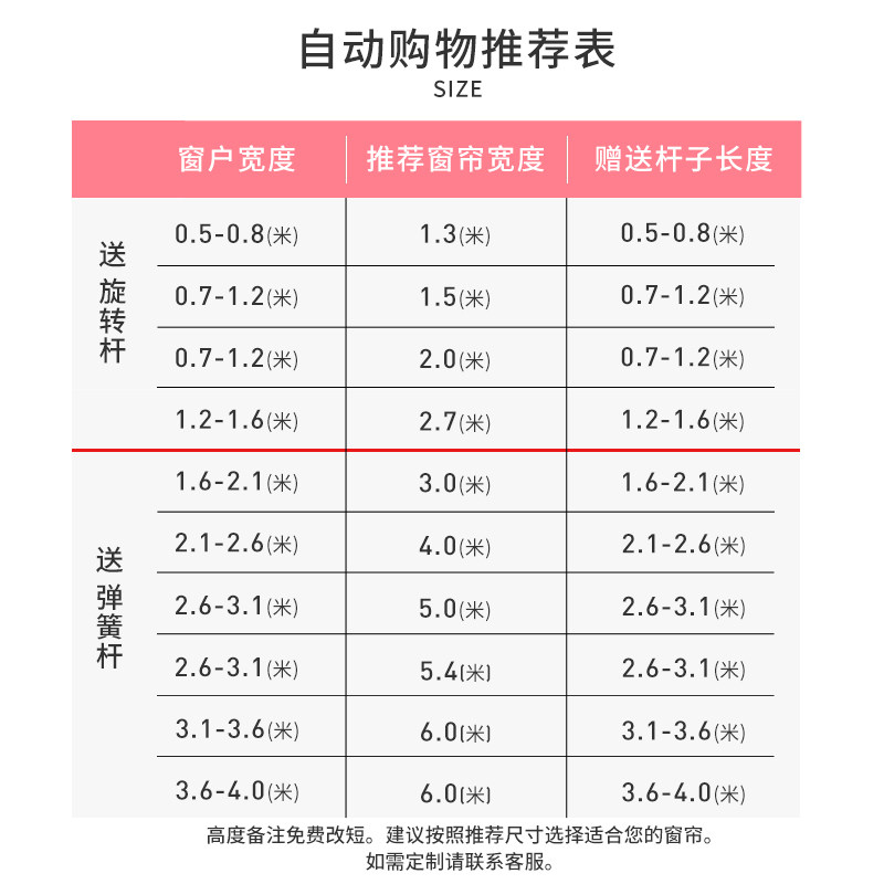 Wide 1 2 high 1 5 m 1 sheet send "swivel pole 0 5-0 8 m 8 m One" width 1 5 height 1 7 m 1 sheet send " spring rod 0 7-1 1 m 1 m