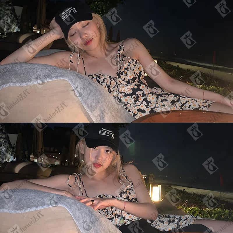 MAJE star with the same 2020 summer vacation Xiao Zou Ju printed floral sexy suspenders French niche dress