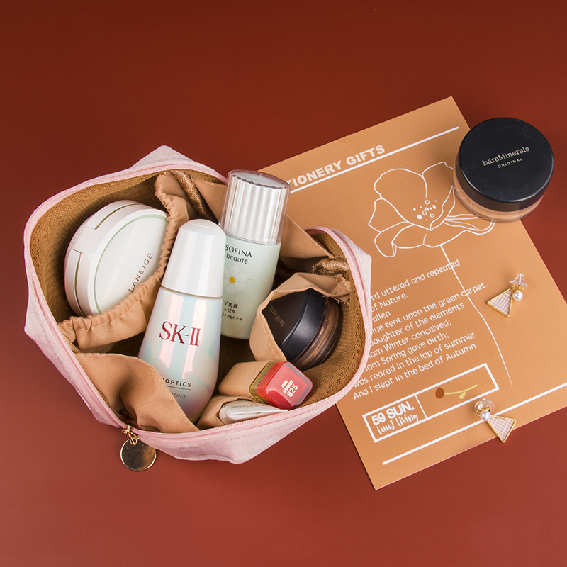 Velvet Makeup Pack Female Portable Small Travel Cosmetics Include Package Makeup Pocket Red Bag