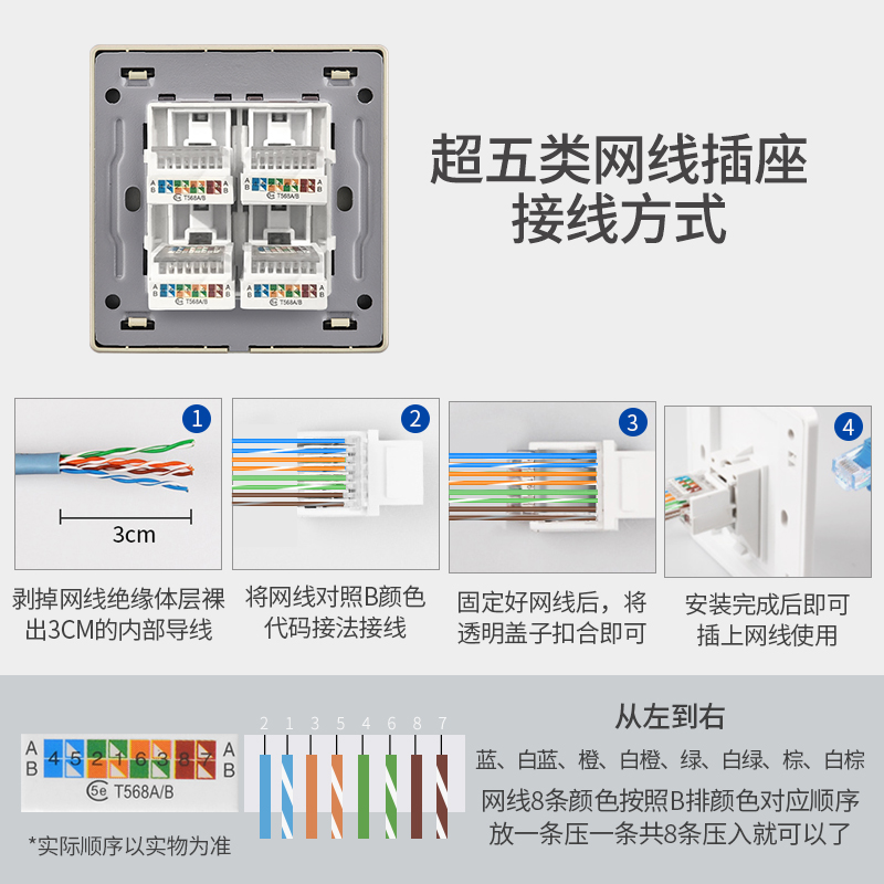 Type 86 Concealed broadband information panel 4-mouth computer Internet socket Four superfive types of network wire computer socket