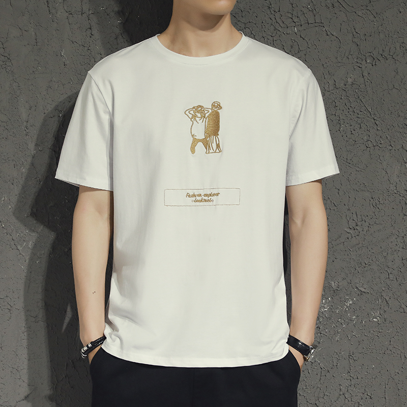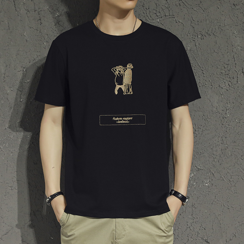 Tide card 2023 new summer men short sleeve T-shirt casual round collar loose printed blouse clothes pure cotton half sleeve shirt-Taobao